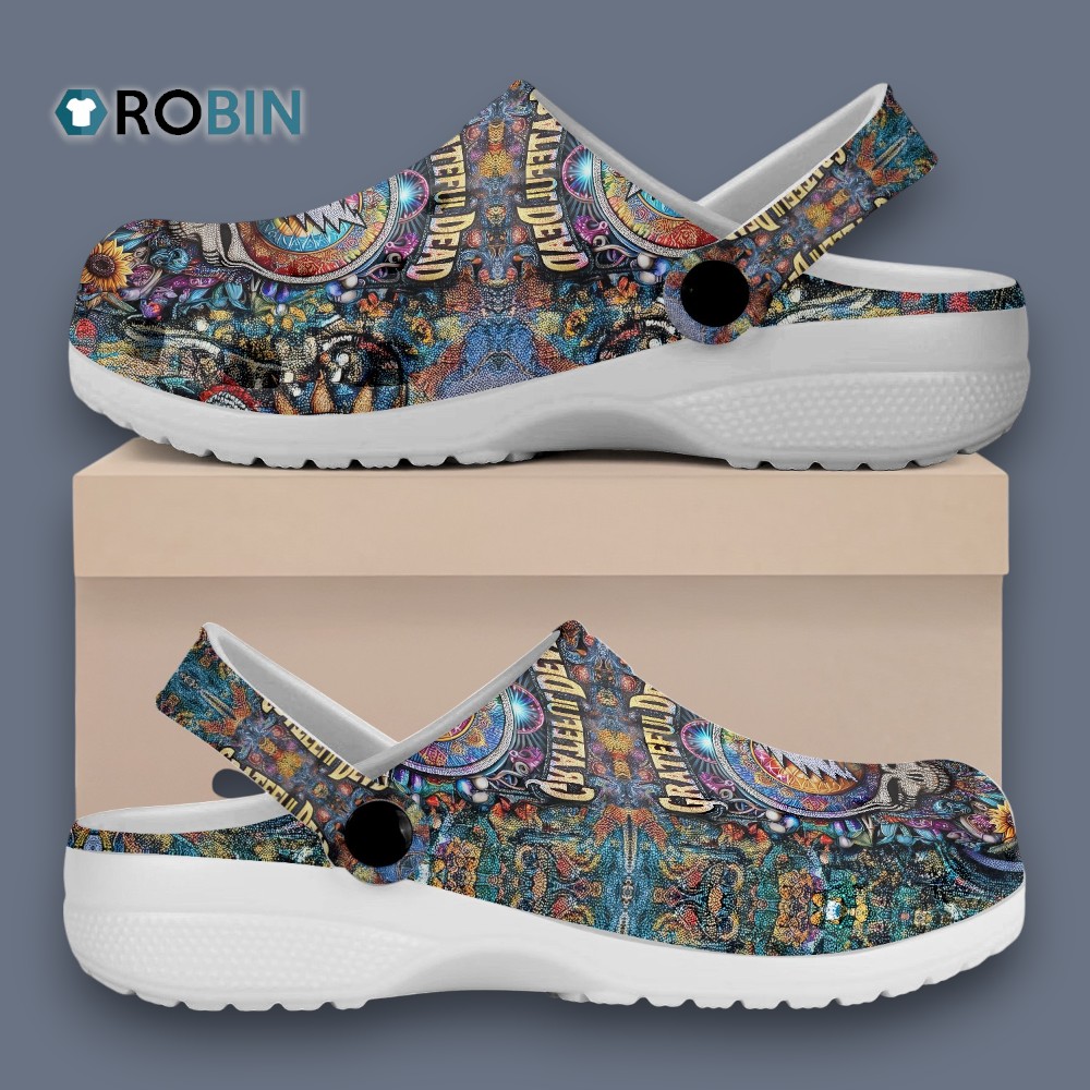 Step into sunshine and good vibes with these limited-edition Crocs! Featuring iconic Grateful Dead imagery, these comfy classics are perfect for grooving on the go. Personalize them for a truly unique statement. Get yours before they're gone! ✌️💀🎶