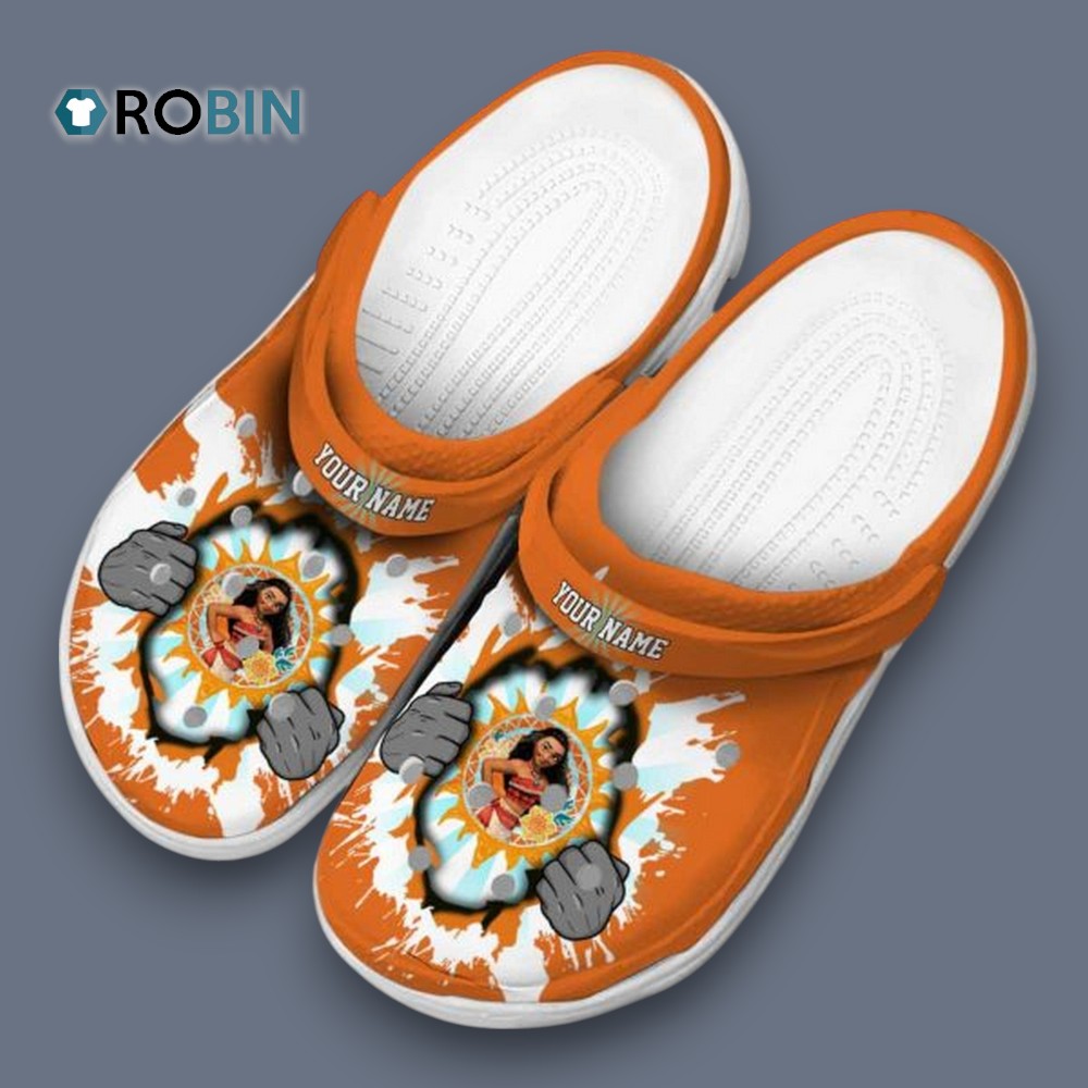 Adventure awaits with these adorable personalized clogs! ✨ Featuring a fun Moana design, they're perfect for little explorers. Get ready for comfy, slip-on fun with a unique touch! Perfect for any Moana fan. Get yours today!
