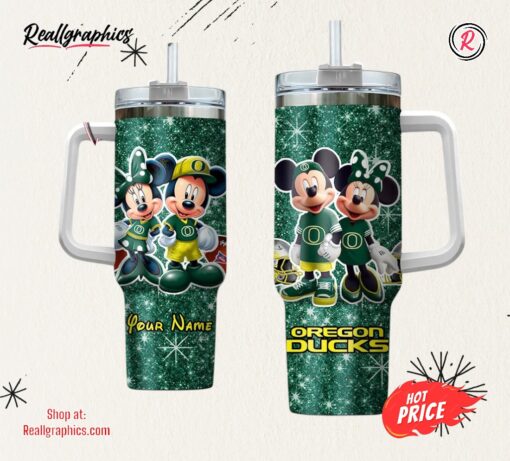 Experience the ultimate blend of personalization and fandom with our exclusive 40oz stainless steel tumbler. Designed for true fans, this unique piece brings together the charm of iconic Disney couple, Mickey and Minnie, with the spirit of the Oregon Ducks. Its robust build ensures your drinks stay at the perfect temperature on game days or any outing. Featuring a convenient handle for easy carrying, this tumbler is the perfect partner for cheering on your favorite team, making it a must-have for any Ducks enthusiast. Make it truly yours by adding your name, showcasing your pride and style with every sip.