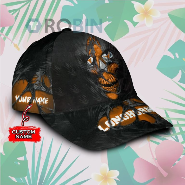 Custome Name Texas Longhorns Skull Torn Fabric Classic Baseball Cap Hat