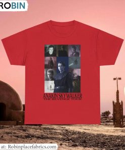 This adorable Anakin Skywalker Eras Tour T-Shirt showcases the beloved character from the Star Wars franchise in a charming and unique way. With a crewneck design, this shirt offers a comfortable fit for all-day wear. The design features various eras of Anakin Skywalker’s journey, making it a must-have for fans of the iconic character. The vibrant colors and detailed graphics make this shirt a standout piece for any Star Wars enthusiast.