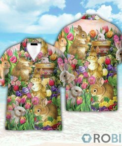 Cute Bunny Happy Easter Day Hawaiian Shirt features
