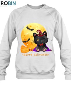 Cute Funny Smile Halloween Black Cat Witch Unisex Shirt