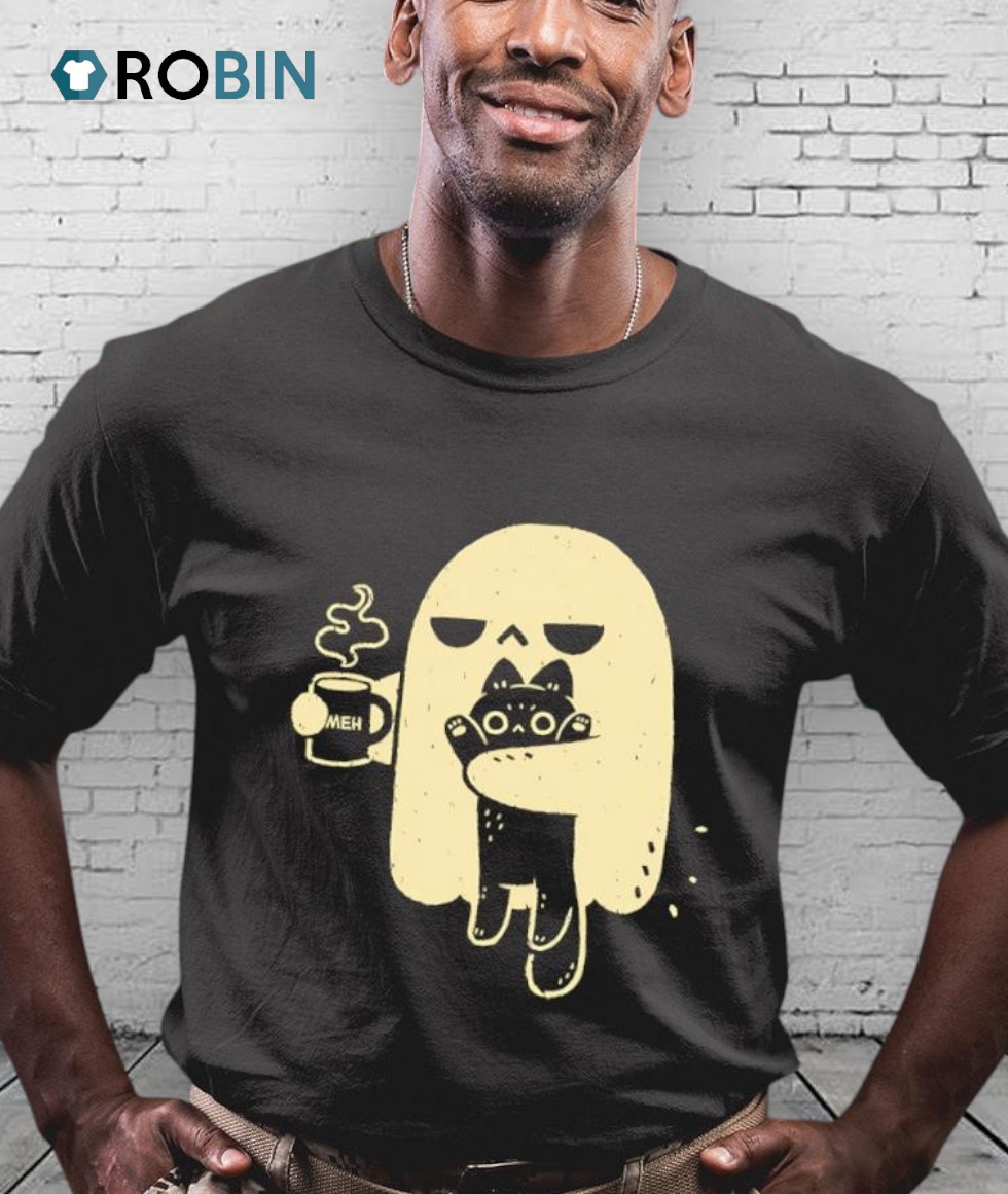 Ever wonder what a ghost would do on a coffee break? This adorable design captures a chill ghost cuddling a cute cat, with a steaming mug in hand. It's a fun blend of spooky and sweet, perfect for expressing your quirky side. Whether you're a cat lover, a ghost fan, or simply love unique designs, you'll want this shirt in your collection. Grab yours today and share the love!