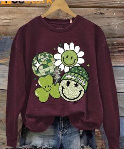 This charming sweatshirt exudes positivity and fun vibes with its playful print. The vibrant colors and eye-catching design will surely brighten up any outfit. Made for those who are always looking on the bright side of life, this casual sweatshirt is perfect for adding a touch of luck and good fortune to your wardrobe. Its comfortable fit and soft fabric make it a cozy and stylish choice for everyday wear. Perfect for spreading good vibes wherever you go.