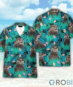 Cute Otter Tropical Leaves Pattern Hawaiian Shirt features