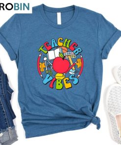 The Cute Teacher Vibes Shirt Cool Teacher Life Tee Tops Sweatshirt is the perfect addition to any teacher's wardrobe. With its cute design and comfortable fit, it exudes a stylish and trendy vibe. Made from high-quality materials, this sweatshirt is durable and long-lasting. It features a unique graphic print that showcases a love for teaching. Whether worn in the classroom or outside, this shirt is sure to bring out the cool and confident teacher within. With its cozy feel and eye-catching design, it is a must-have for all teachers looking to make a statement.