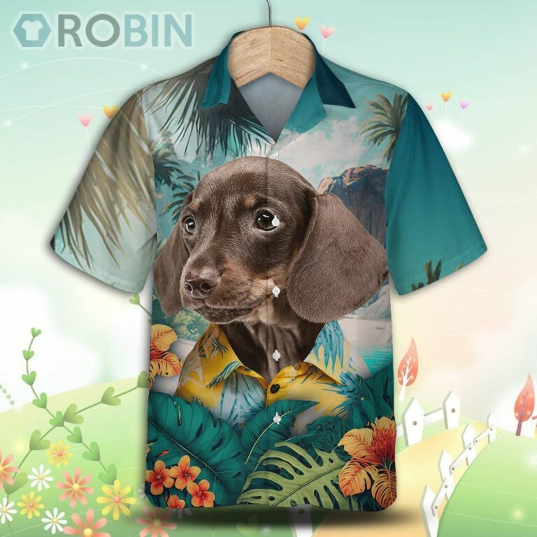 Love Dogs? Show it Off in this Tropical-Inspired Dachshund Hawaiian Shirt!