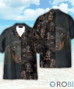 Dachshund Tropical Pattern Hawaiian Shirt features