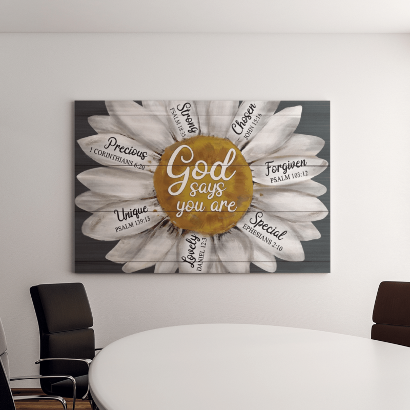 Daisy flower canvas – God says you are strong-chose-forgiven-unique wallart (canvas and poster)
