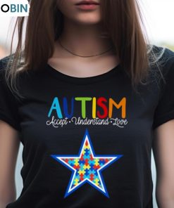 The Dallas Cowboys Autism Accept Understand Love 2023 Shirt is a powerful message of inclusivity and support for the autism community. This shirt represents the team's commitment to acceptance, understanding, and love for individuals with autism. It aims to raise awareness about autism and foster a community that embraces and supports those on the spectrum. By wearing this shirt, fans of the Dallas Cowboys are showing their solidarity and dedication to creating an inclusive society. The shirt's design features the team's logo along with the words Autism Accept Understand Love 2023, making it a meaningful and impactful statement.