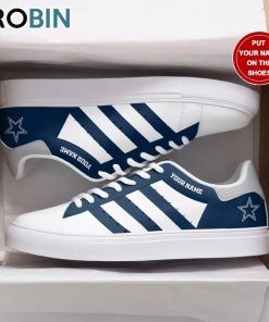 The Dallas Cowboys Color Football Custom Name Stan Smith Sneakers are stylish footwear that showcase the iconic Dallas Cowboys colors. These sneakers have a unique design that incorporates the team’s signature blue and white hues, making them the perfect addition to any Cowboys fan’s collection. With a custom name feature, fans can personalize their sneakers and add a personal touch. Whether you’re cheering on the team from the stands or simply want to show off your Cowboys pride, these sneakers are a must-have for any die-hard fan.