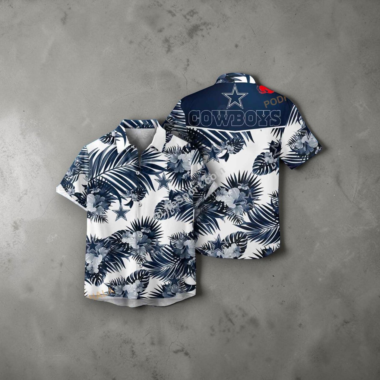 There’s an undeniable energy in a Dallas Cowboys Hawaiian shirt that merges the laid-back vibe of summer with the fierce spirit of football fandom. This design bursts with bold palm leaves that feel fresh and lively, but it’s the classic Cowboys blue and white colors that immediately anchor it in team pride. The palm patterns don’t just fill space—they frame a striking “COWBOYS” block text on the back that commands attention without shouting. Stars, subtle yet unmistakable, mingle with the NFL branding, weaving a story of sports heritage and vibrant island flair. This shirt speaks to those who aren’t afraid to mix a little fun with their loyalty. It’s for the fan who shows up to tailgates with a grin, tuned into the game and ready to celebrate under the sun. The broad sans-serif typography means business—the kind of statement that pairs well with sandy beaches or backyard barbecues. Wearing it doesn’t just say “Dallas Cowboys fan,” it says someone who embraces every moment with a playful energy and bold confidence. Whether gifted to a die-hard sports lover or snagged for a casual day out during summer festivities, it marries fan identity with a distinctly tropical twist. It’s that unique kind of gear that moves beyond the stadium and slides effortlessly into everyday life, bridging sport, style, and a touch of the unexpected. A Dallas Cowboys Hawaiian shirt like this doesn’t demand attention so much as own it, calmly loud in its cool.