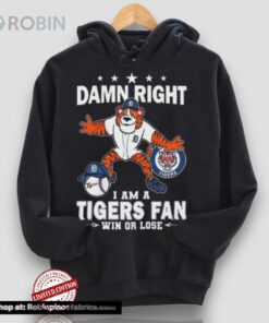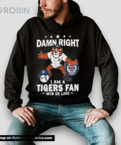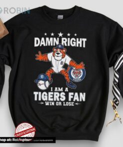 Damn Right I Am A Detroit Tigers Mascot Fan Win Or Lose 2024 Shirt details