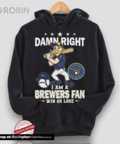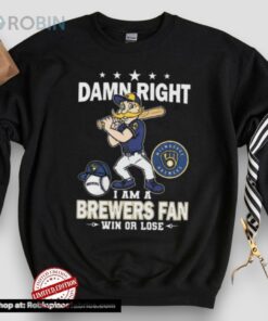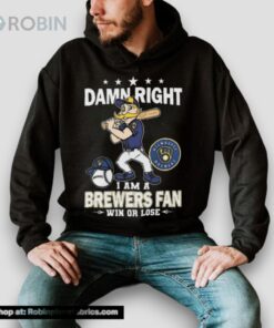 Damn Right I Am A Milwaukee Brewers Mascot Fan Win Or Lose 2024 Shirt details