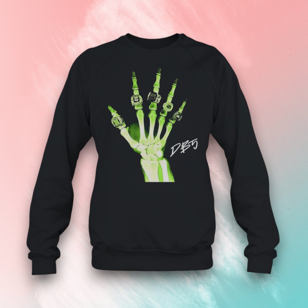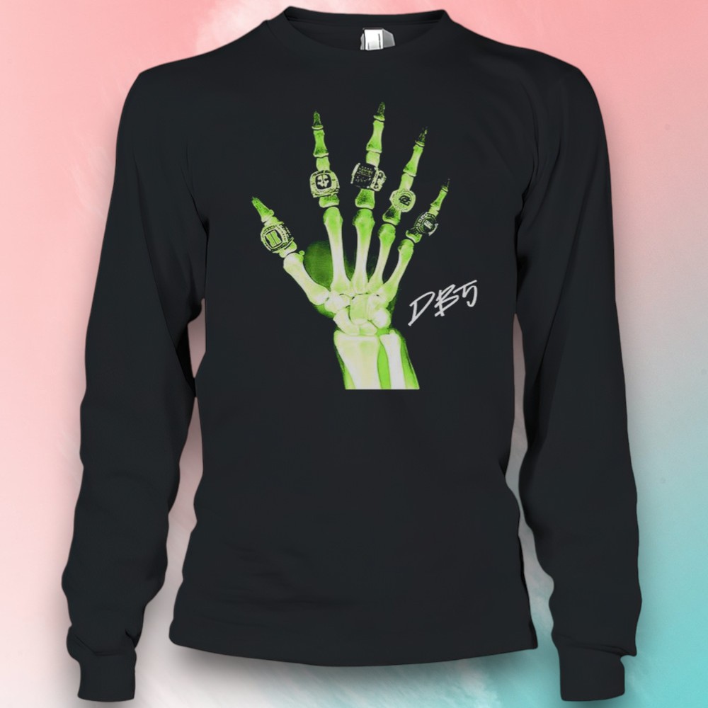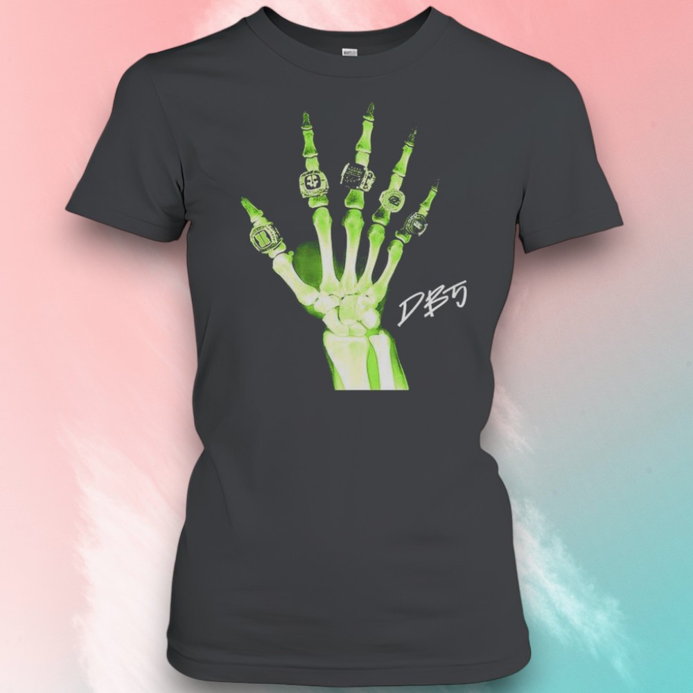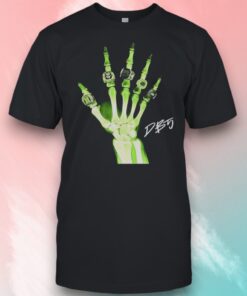 A neon green skeletal hand stretches across a dark gray backdrop, each finger adorned with a distinctively detailed watch that pulses with mechanical precision. The glow of the timepieces contrasts sharply against the black, while stark white accents carve out the intricate lines, giving the design an electric intensity. Below this striking image, a fluid, handwritten signature sweeps boldly across the chest, resembling the autograph of a legend — unmistakably personal, undeniably iconic. This graphic isn’t just about aesthetics; it’s a nod to relentless precision and timing central to the world of competitive gaming. The watches symbolize championship rings, trophies of skill and dominance, fitting perfectly with the passion of any Call of Duty fan who respects the grind and glory of esports. The edgy streetwear vibe speaks to those who thrive on bold statements and aren’t afraid to wear their devotion on their sleeve — literally. Gamers, especially those who follow Damon Karma Barlow’s ascent, will resonate deeply with this shirt. It’s a badge of honor, not just a casual tee—ideal for gaming meetups, fan events, or simply making a statement in everyday life. The intense energy captured in the design mirrors the adrenaline rush of clutch moments and championship victories. As a gift, it’s a meaningful keepsake for collectors and esports players alike, something that bridges fandom with style in an uncompromising way. The Damon Karma Barlow Call Of Duty Championship Rings GOAT Signature Shirt carries more than imagery; it embodies the spirit of competition and the pride in standing among champions.