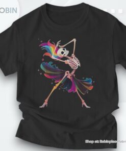 Step into the whimsical world of Halloween fun with our latest festive apparel! This bewitching shirt features an enchanting skeleton ballerina, dancing gracefully in a burst of vibrant rainbow hues. Perfectly blending eerie charm with delightful artistry, it promises to turn heads and spark conversations at any Halloween gathering. Whether you’re trick-or-treating or just celebrating the spooky season, slip into this unique shirt and let the Halloween magic dance around you.