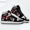 Embrace the dark side with these custom Jordan 1 Highs! Inspired by the iconic Sith Lord, these sneakers feature a sleek black design with subtle red accents. Perfect for any Star Wars and sneaker enthusiast. A unique statement piece to add to your collection.
