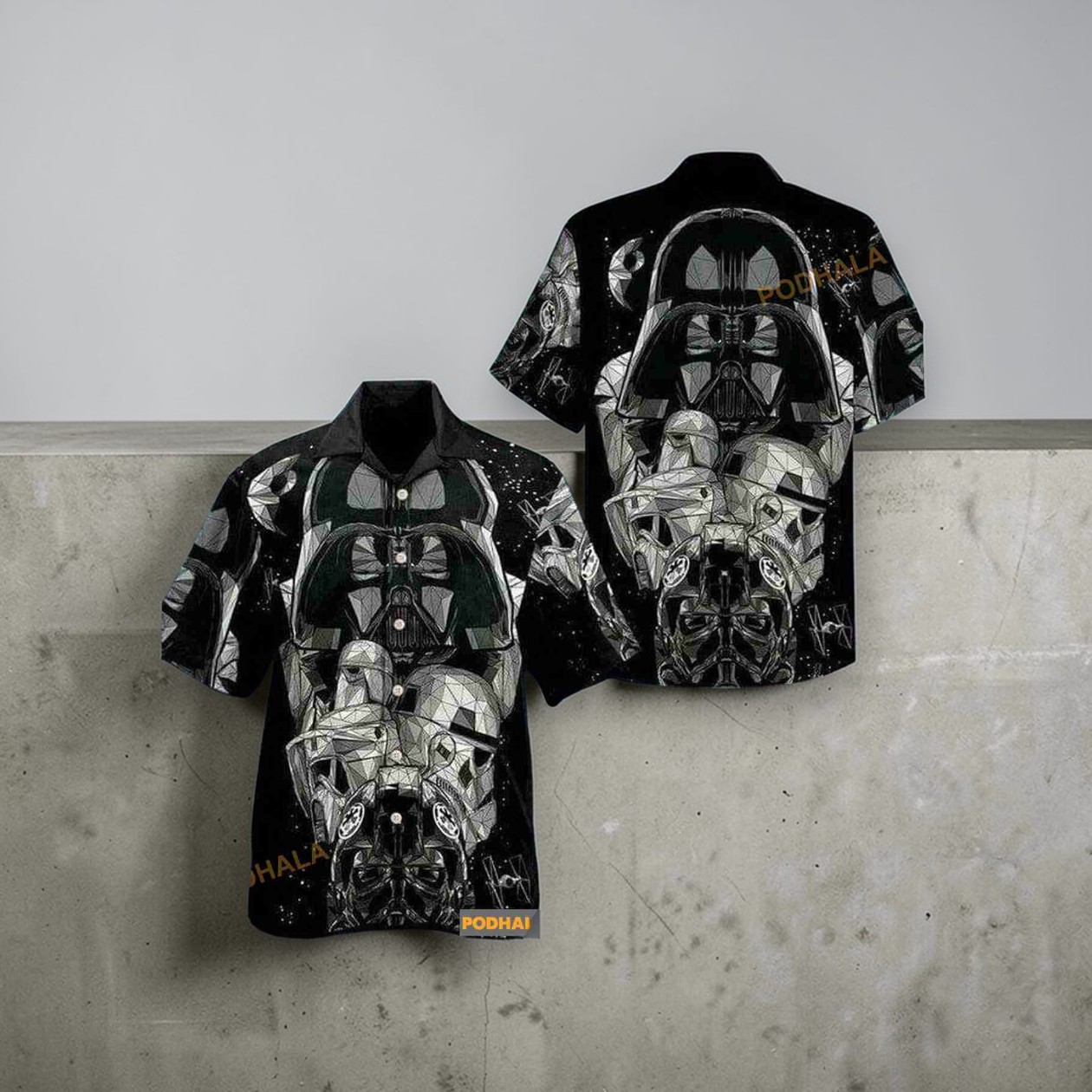Darth Vader looms large in a sharp, unexpected way on this Hawaiian shirt, a striking mix of the dark side and retro arcade vibes. Black and white geometric patterns slice across the fabric, accented by pops of orange that cut through like distant stars in a space-speckled sky. It’s not just a print; it feels like a graphic storyboard, with Vader’s helmeted silhouette standing out amid angular shapes that nod to both sci-fi and vintage game culture. This shirt speaks to the kind of Star Wars fan who wants more than just a logo tee. It captures the brooding, futuristic edge of the character while playing with color and form in a way that feels fresh and bold. Whether worn to a casual meet-up, a fan convention, or a themed party, it signals a subtle confidence—someone who appreciates classic sci-fi storytelling but isn't afraid to bring a bit of flair into their wardrobe. Collectors and enthusiasts who love the deeper aesthetics of Star Wars will find something uniquely compelling here. It’s less about merch and more about identity—how fandom can merge with personal style in unexpected, cool ways. The Darth Vader Hawaiian shirt is a nod to those who live in that space where pop culture and attitude collide, making a statement without shouting.