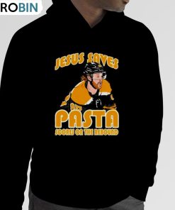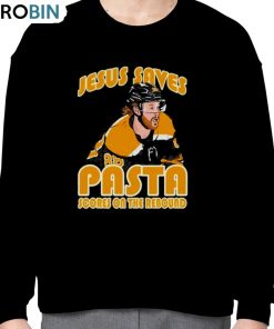 David Pastrnak Jesus Saves Pasta Scores Shirt details