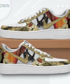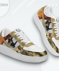 Step into darkness with these graphic Air Force 1s! Featuring a bold Korn-inspired design, these unique sneakers are sure to turn heads. Stand out from the crowd and express your individuality with every step. Limited quantities available!
