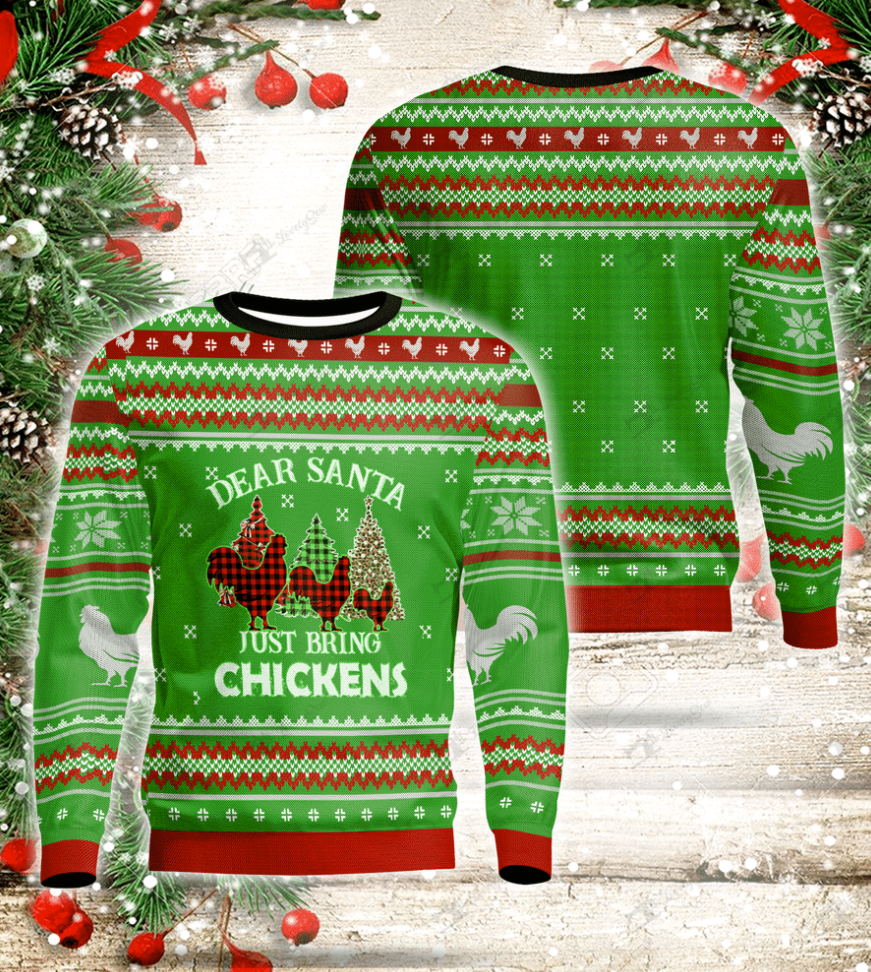 Dear Santa Just Bring Chickens Wood Ugly Christmas Sweater