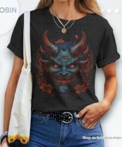 Unleash your inner warrior with a garment that embodies ancient folklore and contemporary edge. This unique shirt features an intricately designed Oni mask, symbolizing both the ominous and the victorious elements of Japanese culture. Designed for all genders, it's perfect for those who dare to stand out and appreciate art with deep cultural roots. Elevate your wardrobe with this distinctive piece that merges mystique and style seamlessly.