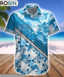 Detroit Lions Watercolor Pattern Hibiscus Hawaiian Shirt details