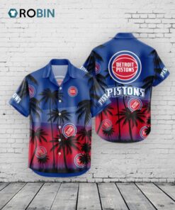 Rep your favorite team with island vibes! This breezy button-down features the iconic Pistons logo nestled amongst swaying coconut trees. Perfect for summer games, BBQs, or just showing off your Motor City pride in style. Get yours today and bring some sunshine to every game day!