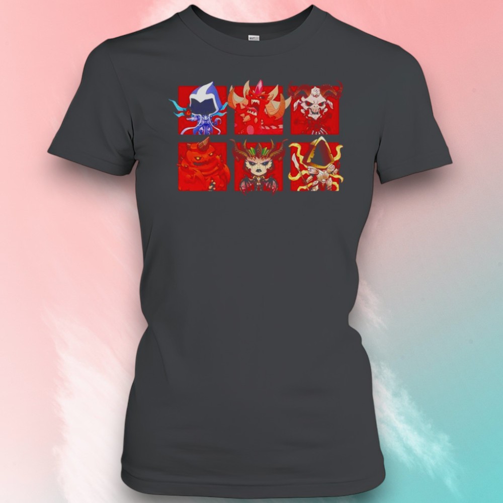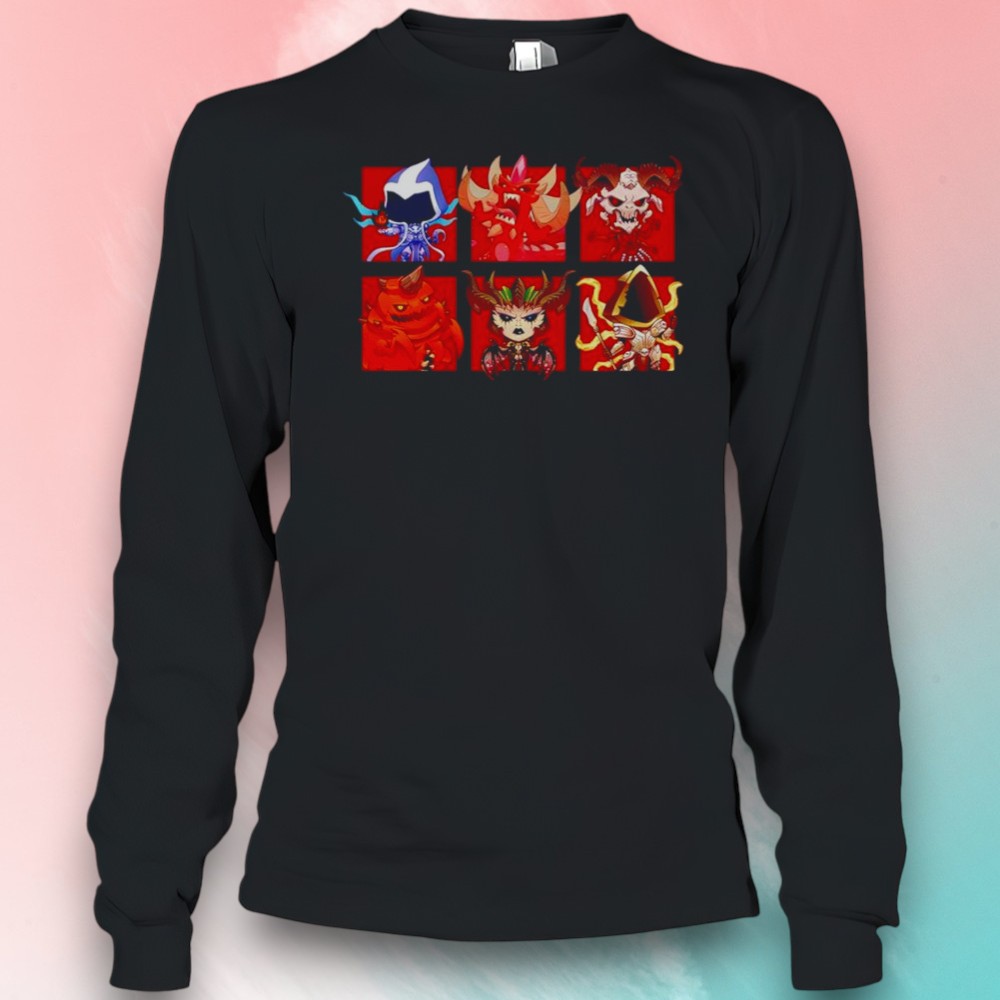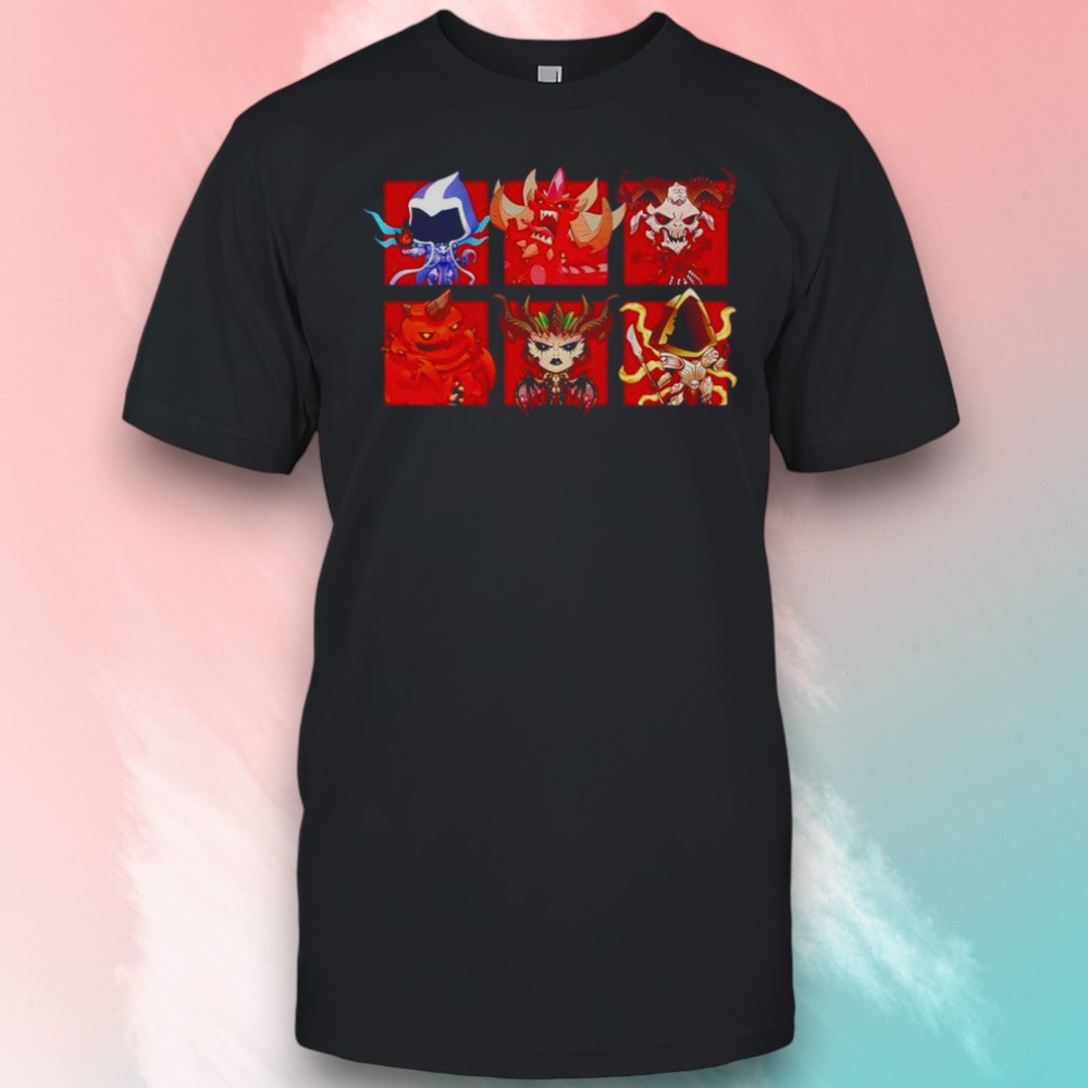 The first thing that catches your eye about this shirt isn’t just the riot of colors—red, orange, blue, and white—but the way nine little squares line up, each packed with a wildly expressive monstrous face. These aren’t your usual scary creatures; they balance impossibly on the edge of adorable and fierce, capturing that thrilling cute but deadly vibe with a wink. It’s a neat nod to the world of playful horror, where monsters aren’t just for fright but for fun, resonating deeply with anyone who thrives in that quirky, edgy space. Each monster face feels like it has a personality, from mischievous grins to snarls that somehow charm rather than intimidate. These cartoonish yet bold designs are sharp and energetic, making this tee far from basic. There’s painstaking attention to how the colorful palette pops against the fabric, drawing you in closer to appreciate the artistic punch packed into each little square. It’s clear this isn’t just a random print slapped on a shirt; it’s a carefully crafted layout that tells a story in tiny, vibrant snapshots. For gamers, monster lovers, or anyone drawn to novelty gifts that spark conversations, this shirt fits like a badge of belonging—both playful and unapologetically bold. Whether worn casually or kept as part of a collection, it catches the eye and holds it. The diablo cute but deadly shirt makes a genuinely fun statement without trying too hard, perfect for those who appreciate design that teases the edge of cute and fierce all at once.
