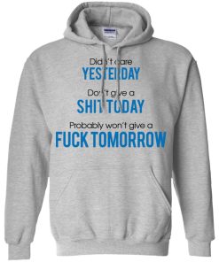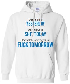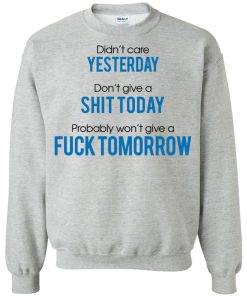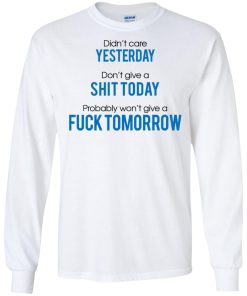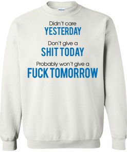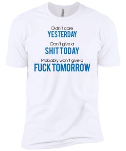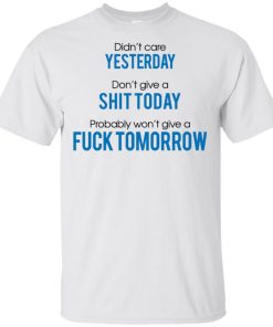 Didn’t care yesterday don’t give a shit day probably won’t give a fuck tomorrow shirt