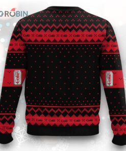Deck the halls with a playful twist. This festive design combines classic holiday patterns with bold, vintage-style branding for a charming, nostalgic vibe. Red and black hues create a striking contrast, making it a perfect choice for holiday gatherings. Stand out with a quirky twist on tradition, and let your love for iconic refreshments shine through in every detail.
