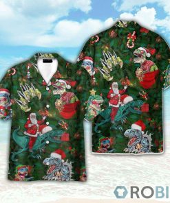 Dinosaur And Santa Enjoy Christmas Hawaiian Shirt features