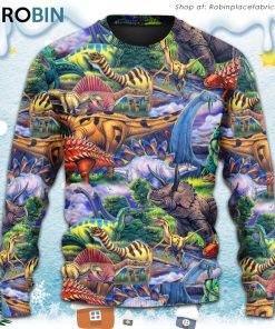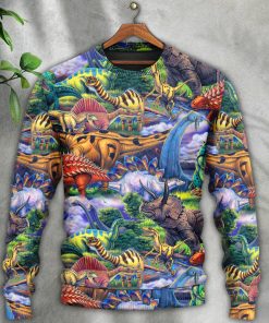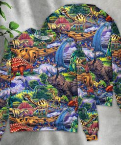 Dinosaur Art Coloful Style Christmas Ugly Sweater, Sweatshirt details
