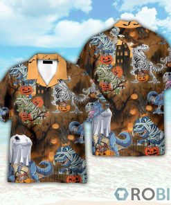This vibrant Hawaiian shirt is perfect for celebrating Halloween in style. The shirt features a playful design of a dinosaur skeleton carrying a pumpkin bucket, giving it a fun and spooky twist. With its vivid colors and comfortable fabric, this shirt is sure to turn heads at any Halloween party or event. Whether you’re trick-or-treating or just enjoying the festivities, this Dinosaur Skeleton With The Pumpkin Bucket Halloween Hawaiian Shirt is a must-have for any Halloween enthusiast.