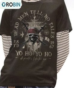 This Disney Dead Men Tell No Tales Est 1967 Shirt Pirates of the Caribbean Unisex T-shirt and hoodie is sure to be a favorite of anyone who loves both the Disney classic Pirates of the Caribbean movies and fashion. The shirt and hoodie are made with high-quality fabric, ensuring that they will be comfortable and will last a long time. The design features an eye-catching image of Captain Jack Sparrow above the infamous pirate phrase Dead Men Tell No Tales, instantly recognisable to anyone who loves the movies. The stylish resistant navy blue provides a versatile way to dress up any outfit. Whether you are a loyal Disney fan, a fan of the Pirates of the Caribbean movies, or you just want to add a rugged touch to your outfit, these clothes are the perfect way to do it.