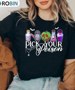 The Disney Villain Shirt Pick Your Poison Halloween Sweater Crewneck is a must-have for all fans of Disney villains. Featuring an eye-catching design, this crewneck sweater showcases various iconic Disney villains like Maleficent, Ursula, Jafar, and the Evil Queen. The shirt is perfect for Halloween or any Disney-themed event. Made from high-quality materials, it is comfortable to wear and will keep you warm during the cooler months. With its vibrant colors and unique design, this sweater is sure to make a statement and showcase your love for Disney villains.