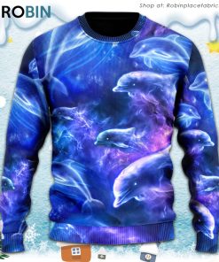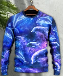 Dolphin Galaxy Neon Glow Style Ugly Christmas Sweater