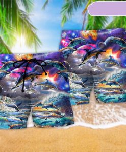 Dolphin Into The Galaxy Beach Short, Gift for Holiday Summer