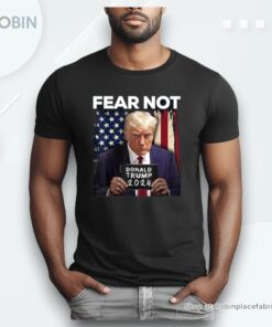 Donald Trump 2024 Flag Fear Not, American Flag Mugshot Trump Unisex Shirt details