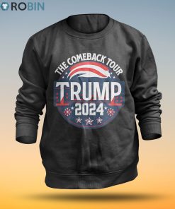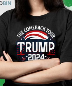 The Donald Trump 2024 The Comeback Tour Trump Election Shirt is available in various sizes and colors, including white, black, red, and navy blue. It is intended to be worn at political rallies, events, or as a casual item of clothing.