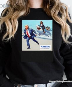 Donald Trump And Kalama Harris Riding Shark Harris For President 2024 Shirt details