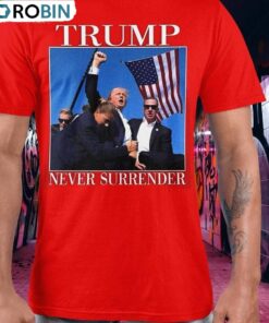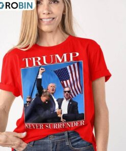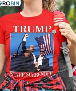 Donald Trump Shot Unisex Hoodie, Never Surrender Shirt Short Sleeve details