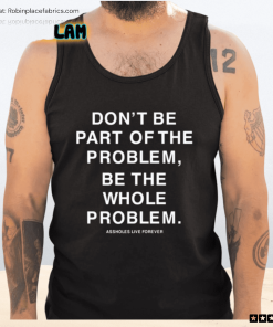 The Don’t Be Part Of The Problem Be The Whole Problem Assholes Live Forever Shirt is a bold and edgy statement tee that is sure to turn heads. It encourages people to take charge and make a difference, rather than just being a bystander. The shirt is designed for those who want to stand out and make a statement with their clothing. It is a powerful reminder that we can all do our part to make the world a better place and leave a lasting impact. With its strong message and eye-catching design, this shirt is sure to inspire and empower those who wear it.