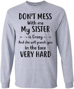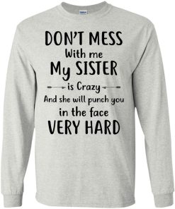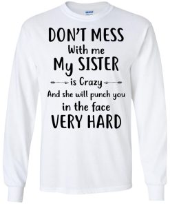 Don’t mess with me my Sister is crazy and she will punch you in the face very hard t shirt, long sleeve, hoodie