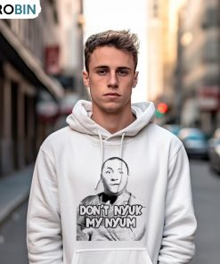 This Dont Nyuk My Nyum Shirt is a spinoff of the classic campy Don't Touch My Junk tee. The shirt features text Don't Nyuk My Nyum, with a playful illustration of a slice of pizza in a bun and a squirt gun. The shirt is printed on a light-colored, high-quality cotton-blend fabric, and the fabric features a soft feel and texture. The shirt also has a standard fit, making it perfect for wearing casually or dressing up. It's a great way to show off your playful attitude and unique style, while still looking stylish and comfortable.