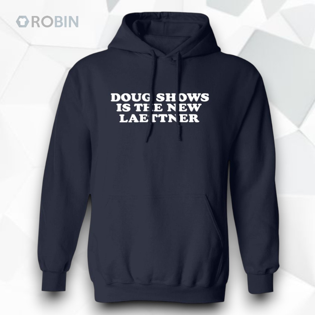 There’s something about sports fandom that goes beyond the game itself—it’s a way to stake a claim in a shared history, a collective shrug at overhyped moments, and a nod to inside jokes only true followers understand. The phrase Doug Shows Is The New Laettner places itself squarely in that tradition, poking fun while channeling the playful confidence of college basketball culture. The hoodie’s design captures that attitude with a bold, blocky serif font reminiscent of vintage collegiate lettering, printed in crisp white against a deep navy backdrop. The simplicity of the centered text makes a statement without shouting, mirroring the sarcastic swagger of the meme it represents. It’s the type of design that feels instantly familiar to anyone who has spent hours debating legendary moments on courts and forums alike. This is gear for those who carry their fandom beyond the scoreboard—people who see sports as part of their identity, the kind of humor that sparks knowing smiles at tailgates or casual meetups. It fits easily into a lifestyle where basketball talk flows as freely as laughter, where authenticity and playful rebellion coexist. Whether worn around town or passed along as a nod to a friend steeped in sports memes, this hoodie is as much a cultural statement as a piece of clothing.