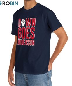 This Down Goes Anderson Cleveland Vs Chicago Vintage Sweater Crewneck is a stylish way to show off your support of your favorite basketball team. The sweater features a black body with the words “Down Goes Anderson Cleveland” in bold white lettering, along with beige accents and the team's logo printed on the left chest. The high-quality knit construction ensures you'll stay comfortable no matter how active you get cheering on the team. The ribbed cuffs and hem offer a secure fit that won't ride up or slide around when you're in motion. Whether you're headed to a game or just want to show some team spirit any day of the week, this crewneck is a great way to do it.