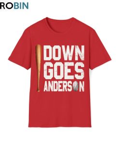 The Down Goes Anderson Funny Shirt is the latest trending baseball-inspired unisex shirt. This hilarious shirt features a bold print of the phrase Down Goes Anderson on the front, making it the perfect choice for any baseball fan with a sense of humor. Made from high-quality materials, this shirt is both comfortable and durable. Whether you're heading to a game or just want to show off your love for the sport, the Down Goes Anderson Funny Shirt is a must-have. Don't miss out on this trendy and laugh-inducing piece of baseball apparel.