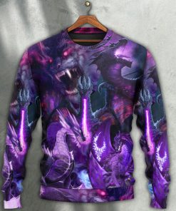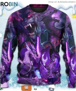 Dragon Dark Purple Lightning Art Style Christmas Ugly Sweater, Sweatshirt details